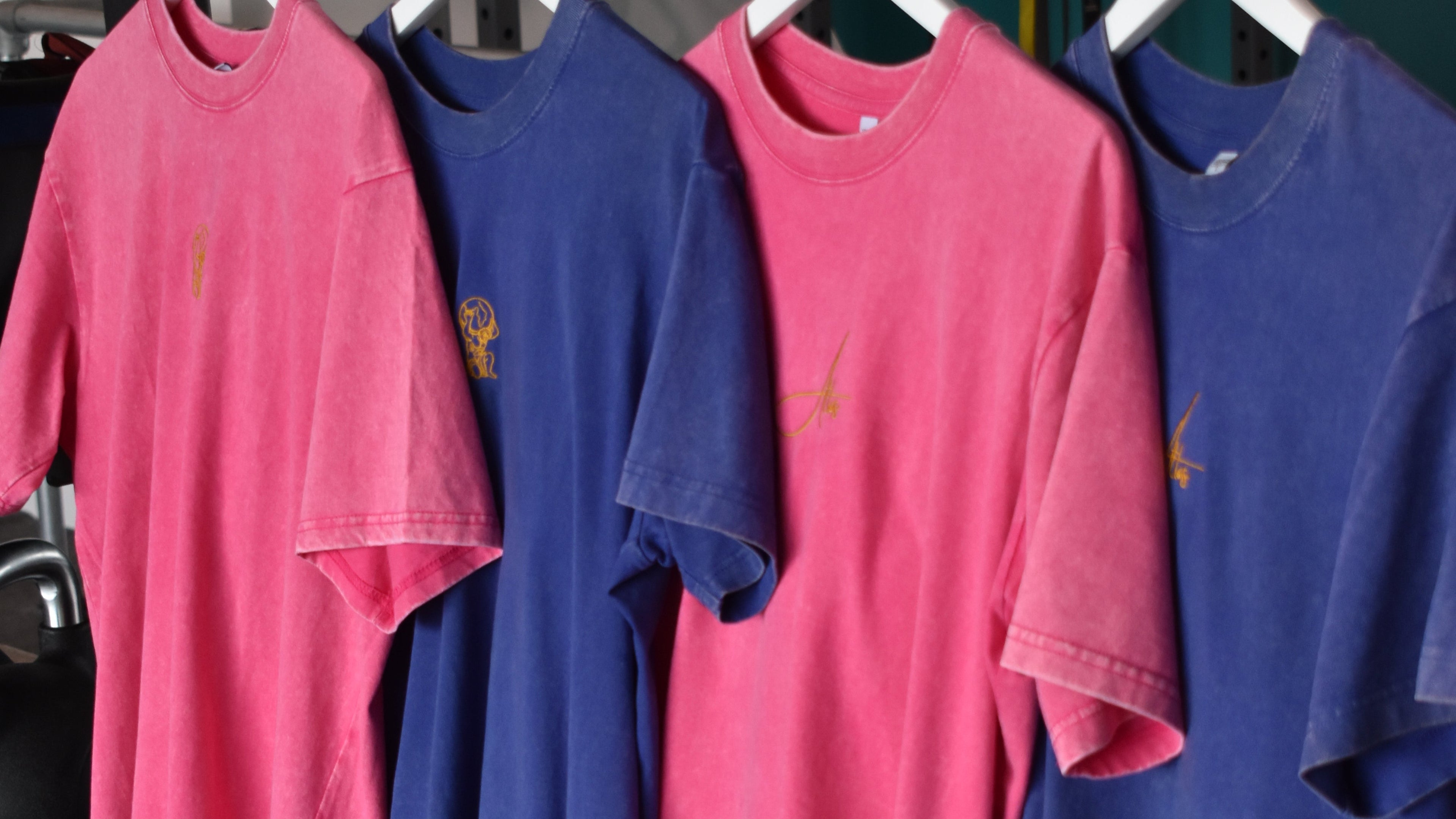 Pink/Blue Oversized T Shirt with Embroidered Logo
